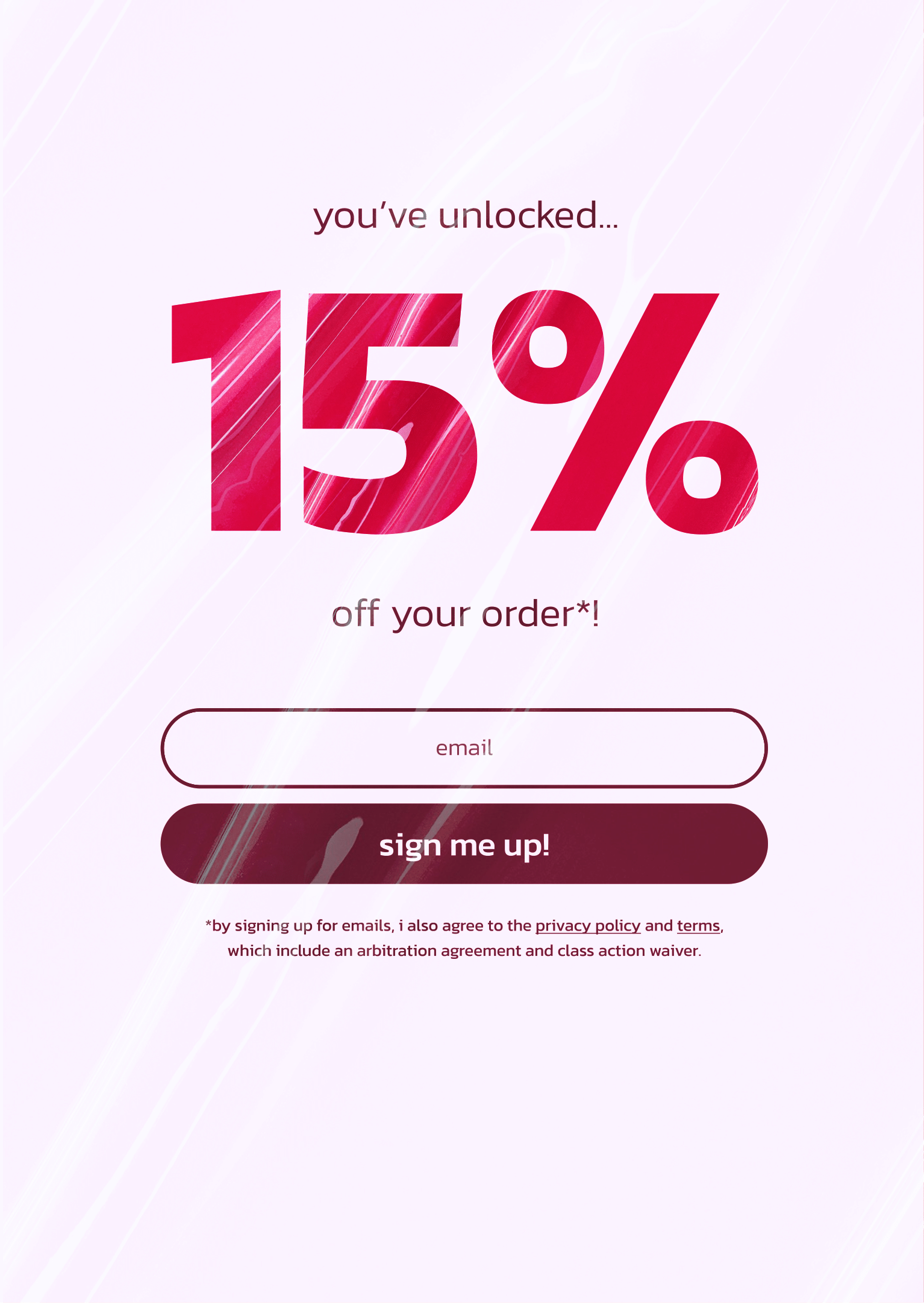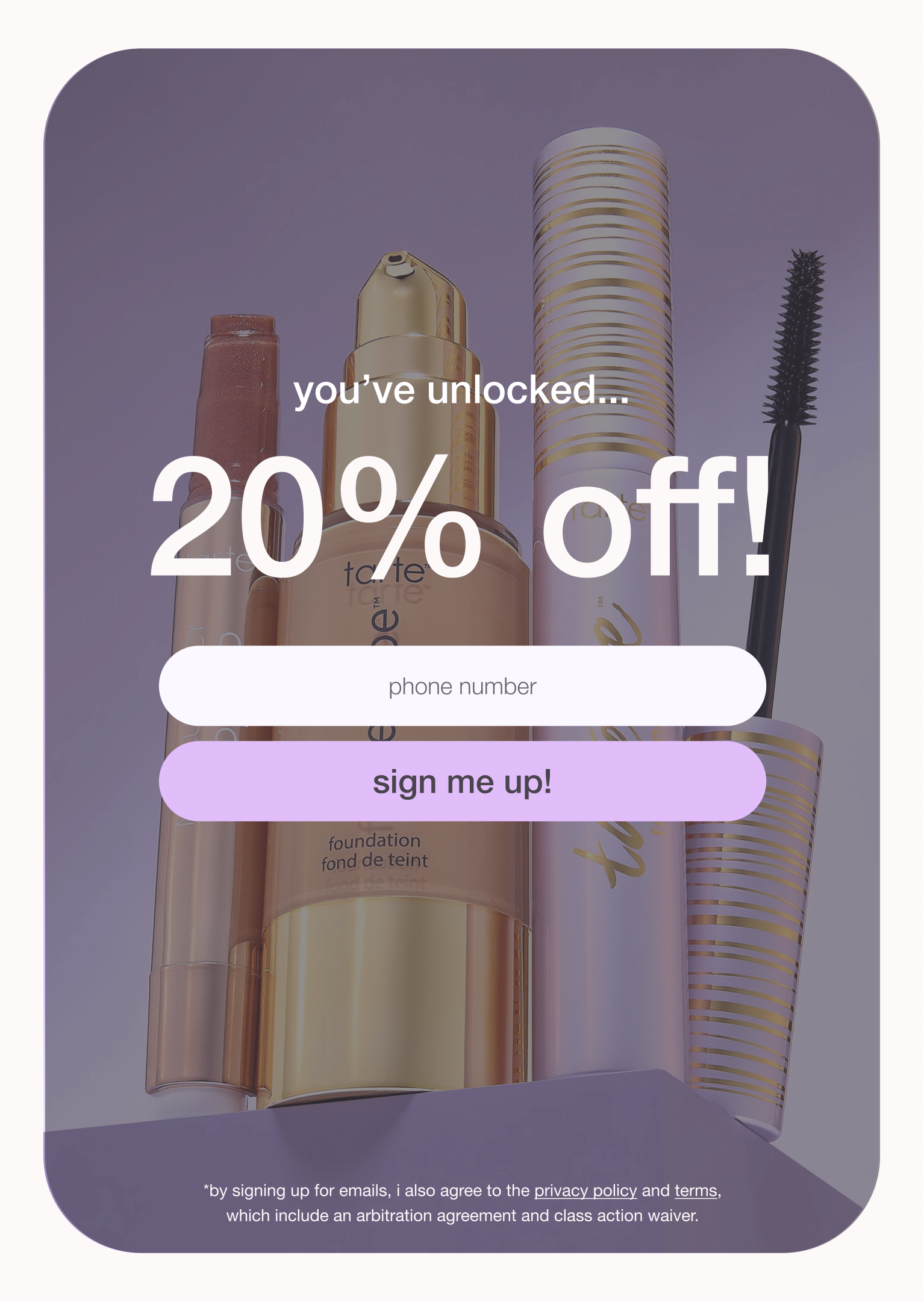 I designed a collection of spin-to-win wheel overlay duo-page concepts for Tarte’s website, intended to encourage email and SMS sign-ups through an interactive discount experience.