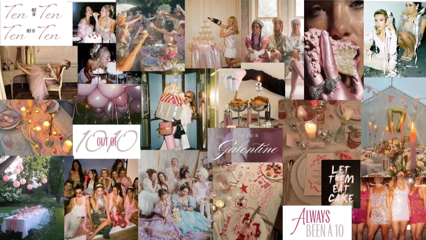 A playful, ultra-feminine birthday celebration built around the idea that Shape Tape has always been a 10. Soft pastels, champagne tones, cakes, and whimsical party details celebrate confidence, consistency, and “marie antoinette” elements with an elevated, yet edgy, girly twist.