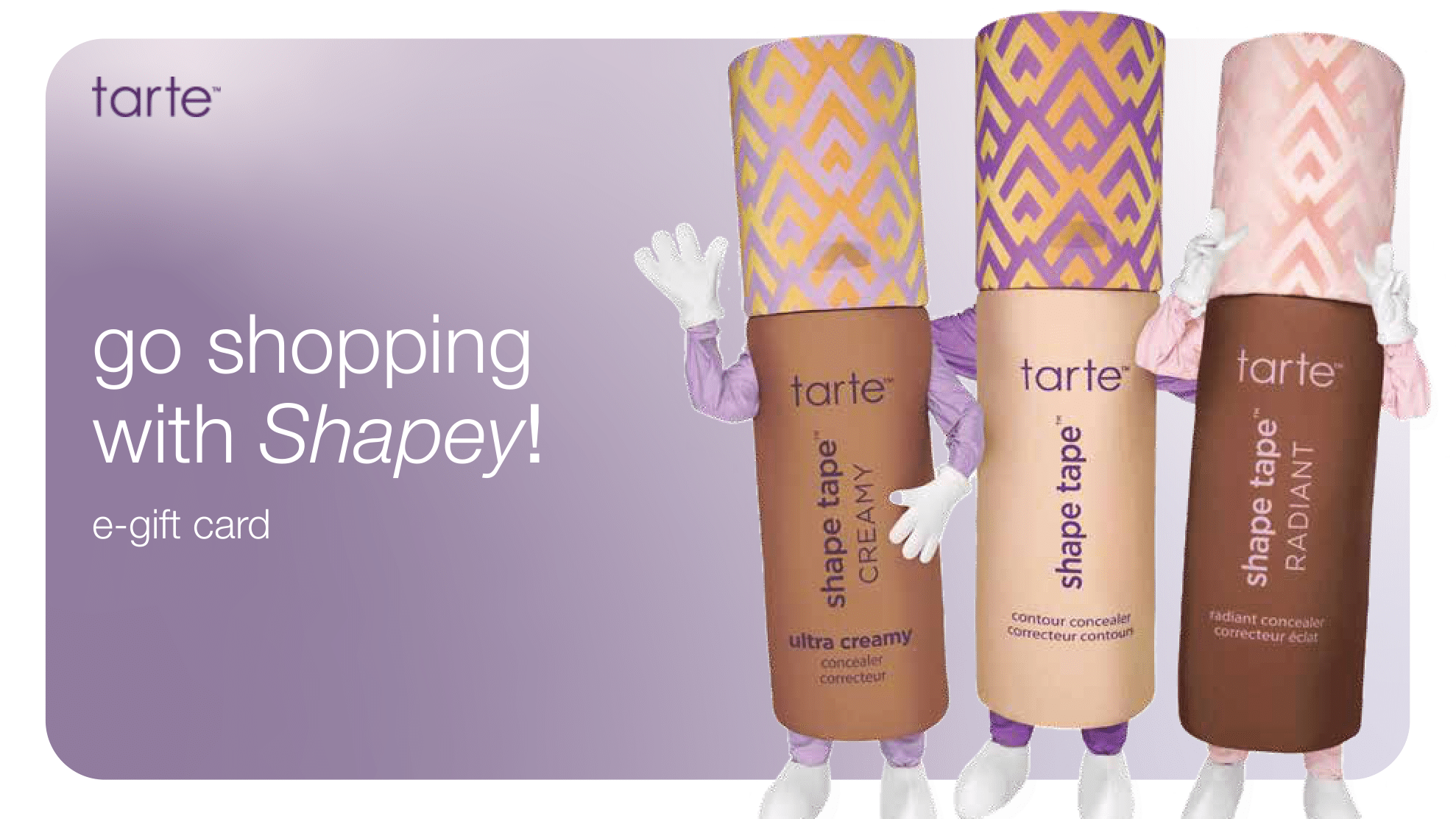 For e-gift cards, I focused on image-based designs that showcased Tarte’s personality and visual identity. These concepts explored how digital gifting could feel expressive and elevated while remaining flexible across email, mobile, and checkout experiences, transforming a functional asset into a branded moment.